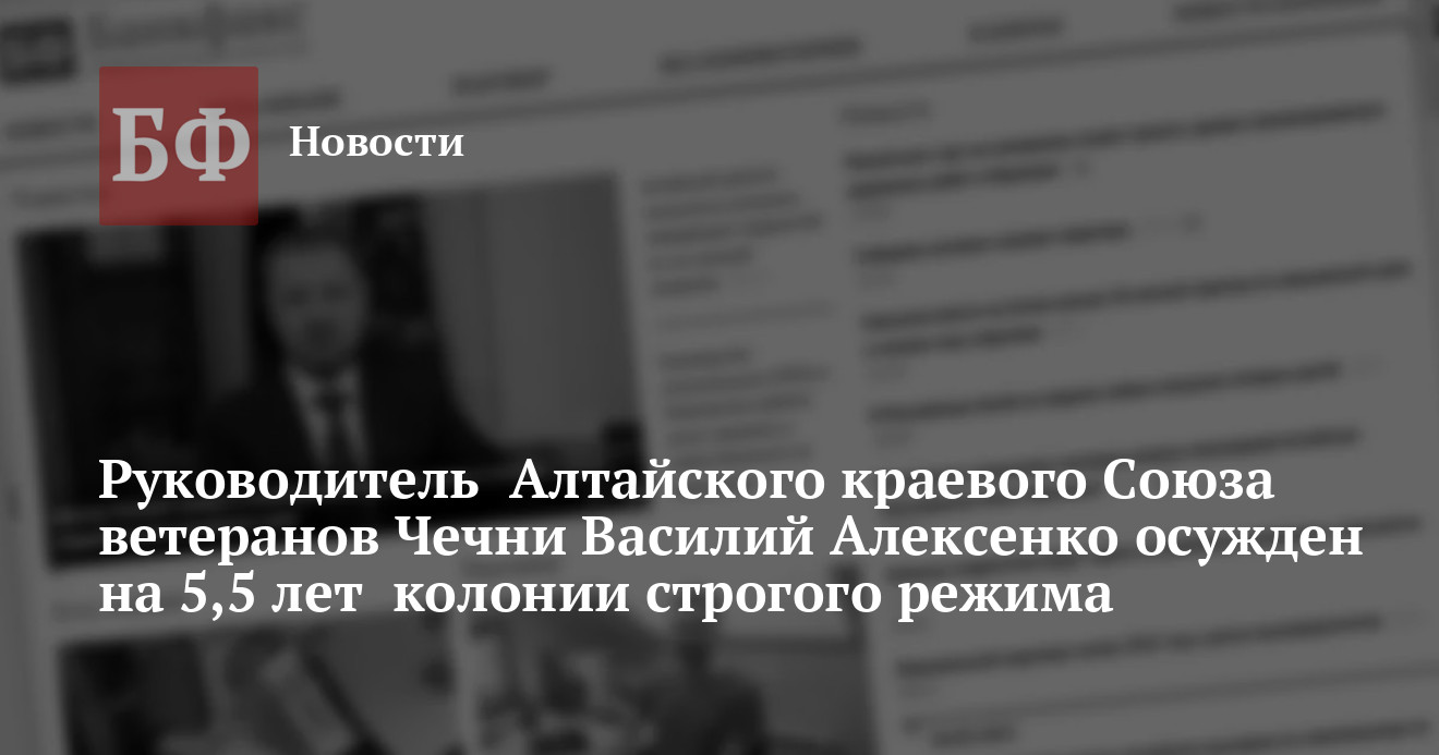 Новоалтайский городской суд 15 января признал руководителя правления Алтайского краевого Союза ветеранов Чечни Василия Алексенко виновным в похищении человека (п.п. «а», «з» ч.2 ст.126) и вымогательстве (п.п. «а», «в», «г» ч.2 ст.163). Ему назначено 5 лет и 6 месяцев колонии строгого режима. Осужденный был взят под стражу прямо в зале суда.