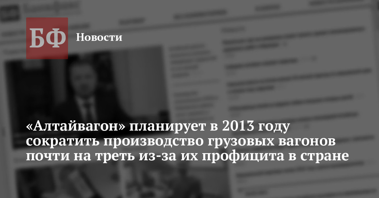 ОАО «Алтайвагон» (входит в холдинговую компанию «Сибирский Деловой Союз») планирует в 2013 году снизить производство грузовых вагонов на 28% до 6,16 тысяч единиц. В 2012 году на заводе изготовлено 8,5 тысяч вагонов. Сокращение объемов производства в компании объясняют негативными экономическими явлениями в России и в мире, снижением цены на вагоны и профицитом подвижного состава в стране.