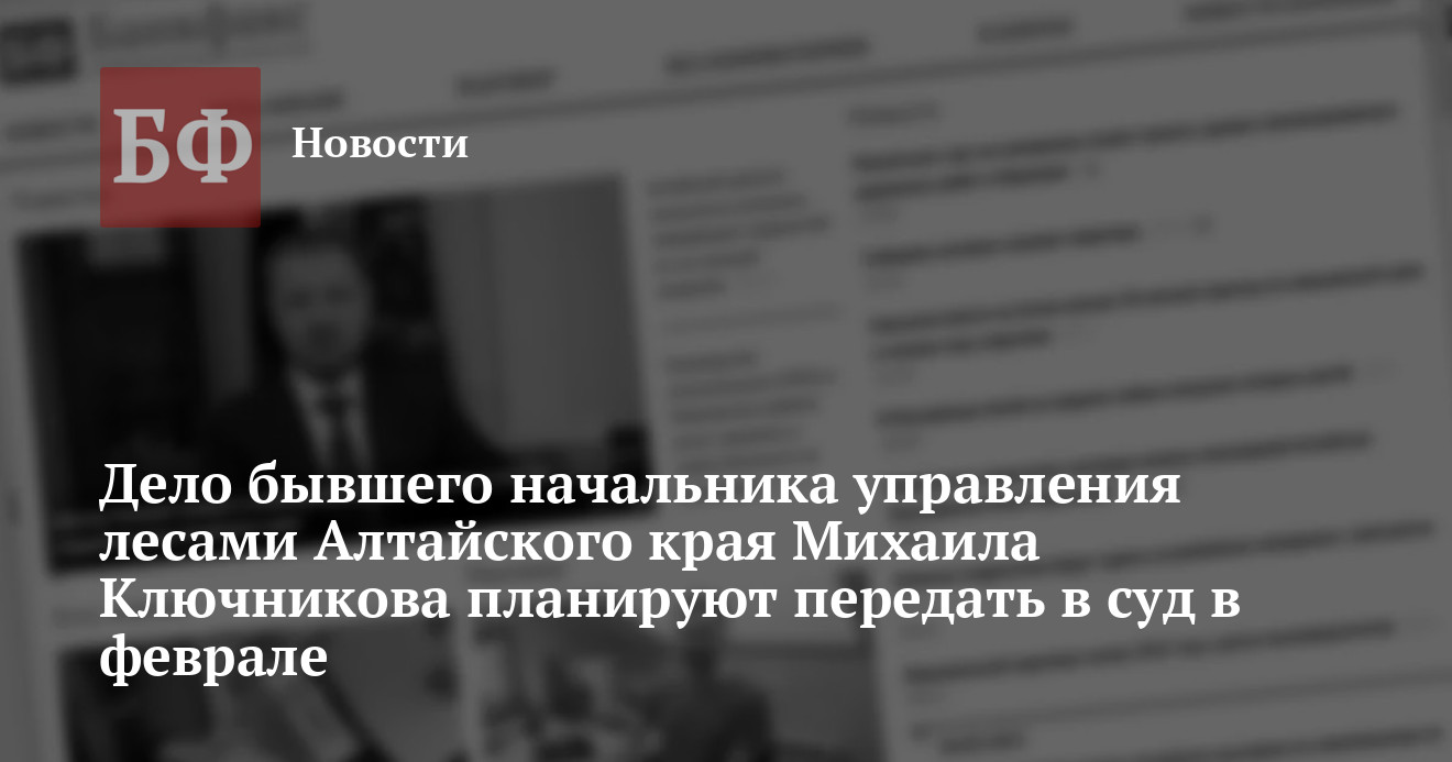 Расследование уголовного дела в отношении экс-начальника управления лесами Алтайского края Михаила Ключникова завершено, сообщил руководитель отдела по расследованию особо важных дел СУ СК России по Алтайскому краю Денис Никитин.