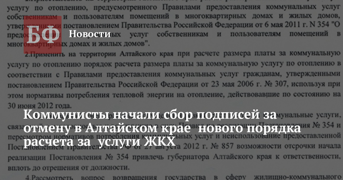 «Мы объединим наши подписи с теми, которые соберут коммунисты на митинге в Барнауле 24 февраля, и отправим президенту. У губернатора была возможность отсрочить действие постановления № 354 на два года — это можно было сделать до 15 сентября 2012 года. Как это сделали в других сибирских регионах. Сейчас только президент каким-то новым распоряжением сможет изменить ситуацию», — цитирует Черданцева пресс-служба алтайских коммунистов.