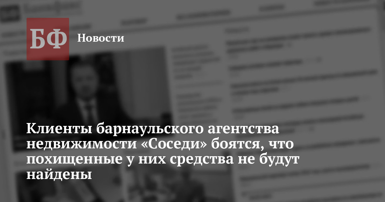Скандал с агентством недвижимости «Соседи» разгорелся в августе 2012 года. Как сообщал тогда Союз риэлторов Барнаула и Алтайского края, в комитет по защите прав потребителей участников рынка недвижимости при СРБиАК обратились клиенты компании. ООО «Соседи» заключало договоры инвестирования строительства, активно принимая деньги от граждан.