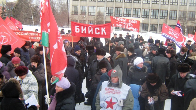 Коммунисты вышли на площадь с лозунгами и растяжками: «Президент, останови грабеж населения за услуги ЖКХ», «За услуги ЖКХ — 10% совокупного дохода семьи!», «Против сокращения зарплат — и роста квартплат!», «Губернатор, прокурор, остановите беспредел в Рубцовске!» и т.п.