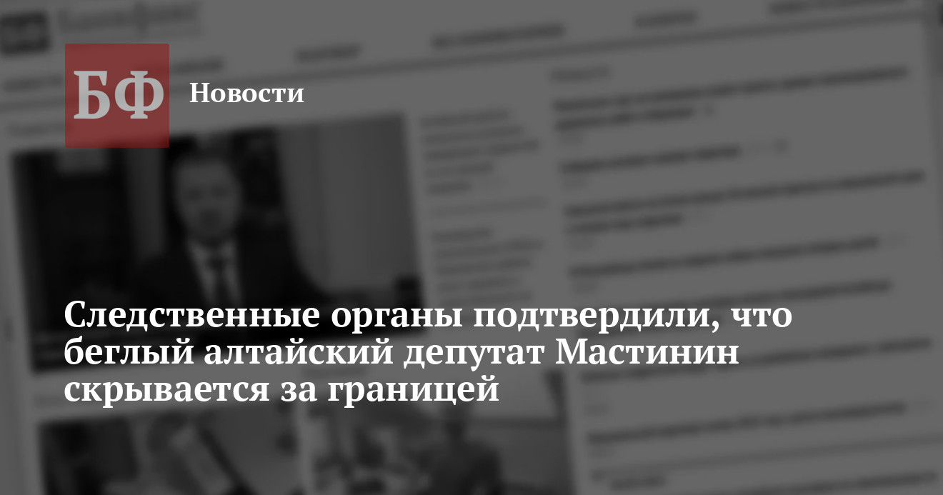 Депутат Алтайского Заксобрания Александр Мастинин находится за пределами России, заявил 13 марта в ходе пресс-конференции первый заместитель руководителя краевого следственного управления СК РФ Вячеслав Росщупкин.