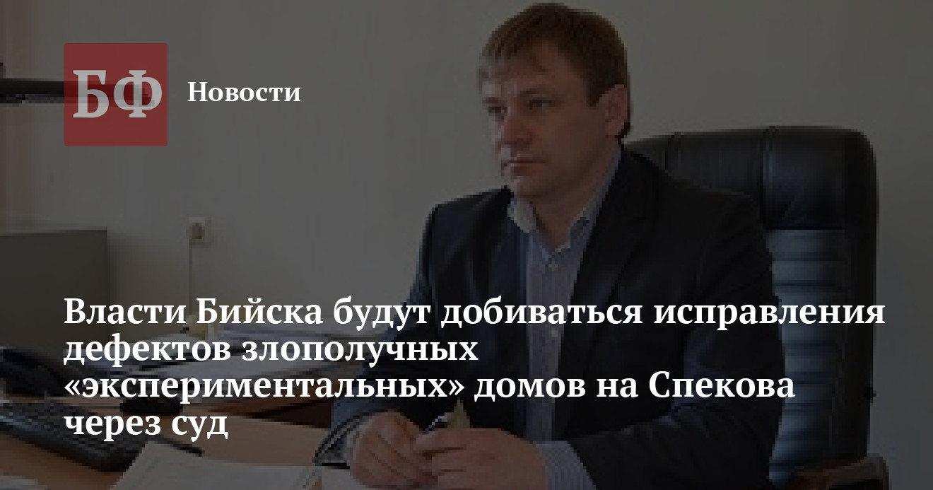Напомним, согласно графику устранения многочисленных строительных дефектов трех трехэтажек, до 1 апреля 2013 года за счет средств застройщика ООО «ИК «Новолит» должны были быть исправлены все недоделки кровли, лестничных маршей и технического подполья, до 1 июня — приведены в надлежащий вид наружные стены зданий, а также жилые помещения. Компания-застройщик за исправление недочетов взялась, но темпы явно не устраивали ни жителей домов, ни городские власти. 15 февраля администрация Бийска направила в суд иск о понуждении ИК «Новолит» к максимальной активизации работ. Кроме того, срок 1 апреля озвучивал в ходе пресс-конференции и вице-губернатор Алтайского края Яков Ишутин. По его мнению, проблема со Спекова заключается в том, что «пришли не очень состоятельные люди и налепили не совсем то, что надо». «Это все издержки 94-го закона (ФЗ № 94 от 21 июля 2005 года «О размещении заказов на поставки товаров, выполнение работ, оказание услуг для государственных или муниципальных нужд» — прим. ред. «БФ»). Уверяю, что максимум до 1 апреля мы эту ситуацию поправим», — подчеркнул тогда замгубернатора.