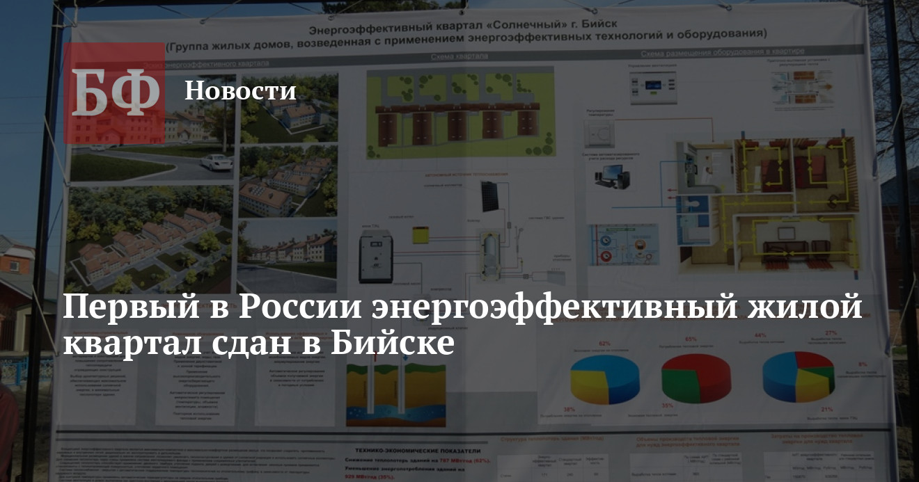 Первый в России энергоэффективный жилой квартал состоит из пяти компактных трехэтажных домов по улице Боровая. В рамках программы переселения сюда переедут 144 семьи из 17 ветхих и аварийных домов, в общей сложности 378 жителей Бийска. Квартиры переселенцам предоставят такой же площади, какая была на старом месте. На финансирование проекта потребовалось более 247 млн рублей: 137 млн — федеральные средства, 88 млн из краевого бюджета и 22 млн рублей из бюджета Бийска. Стоимость одного квадратного метра строительства жилья составила 37 тысяч рублей.