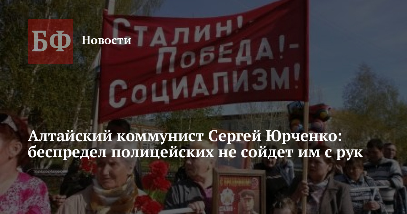 Как заявляют представители КПРФ в Алейске, их пытаются обвинить в организации несанкционированного пикета из-за использования в День Победы якобы политического лозунга «Сталин. Победа. Социализм». Согласно материалам сайта реготделения партии, 9 мая на городском мемориале сотрудники полиции Алейска задержали трех коммунистов Елену Прозорову, Людмилу Петрову и Александра Добрынина. Спустя три часа представителей партии отпустили без оформления каких-либо документов. Однако поздно вечером «протоколы об административном правонарушении» привезли прямо домой. По словам задержанных, полицейские обращались с ними грубо и в случае невыполнения требований обещали «применить физическую силу».