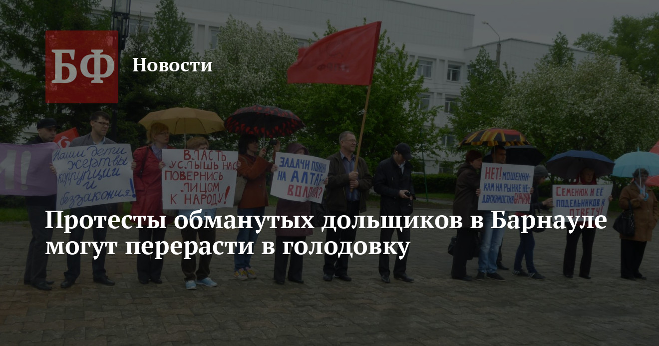 В Барнауле состоялся митинг обманутых дольщиков, пострадавших от деятельности агентства недвижимости «Соседи», которое возглавляла Маргарита Семенюк, а также застройщика домов по улице 4-я западная 27 и 29а, предпринимателя Игоря Афанасьева. Мероприятие проходило 28 мая на площади Ветеранов. Акцию поддержал депутат Госдумы Сергей Юрченко и другие представители реготделения КПРФ. Об этом сообщает пресс-служба крайкома партии.