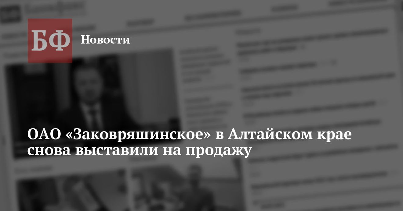 Фонд имущества Алтайского края 9 июля проведет очередной открытый аукцион по продаже акций ОАО «Заковряшинское» в Крутихинском районе.