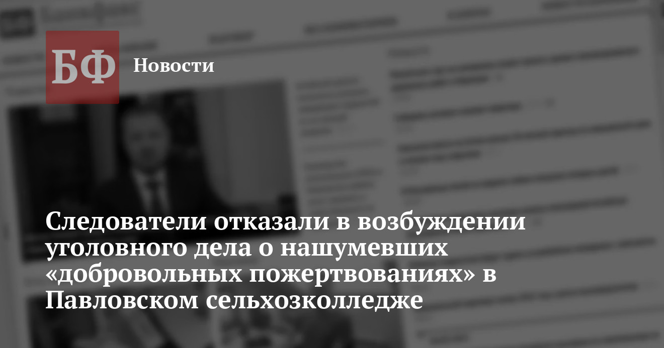 «Следственными органами тщательно проверены все доводы обратившихся в правоохранительные органы. Кроме того, опрошены должностные лица и преподавательский состав учебного заведения. Также изучена финансовая и правоустанавливающая документация колледжа. При проведении проверки не было установлено фактов отчисления студентов по причине неуплаты добровольных пожертвований. Также следствием не обнаружено признаков хищения денежных средств, поступивших от студентов по основаниям «платные услуги» и «добровольные пожертвования», — подчеркнула старший помощник руководителя СУ СКР по Алтайскому краю по взаимодействию со СМИ Людмила Рязанцева. По ее словам, следователем принято решение об отказе в возбуждении уголовного дела в связи с отсутствием состава преступления. (п. 2 ч. 1 ст. 24 УПК РФ).
