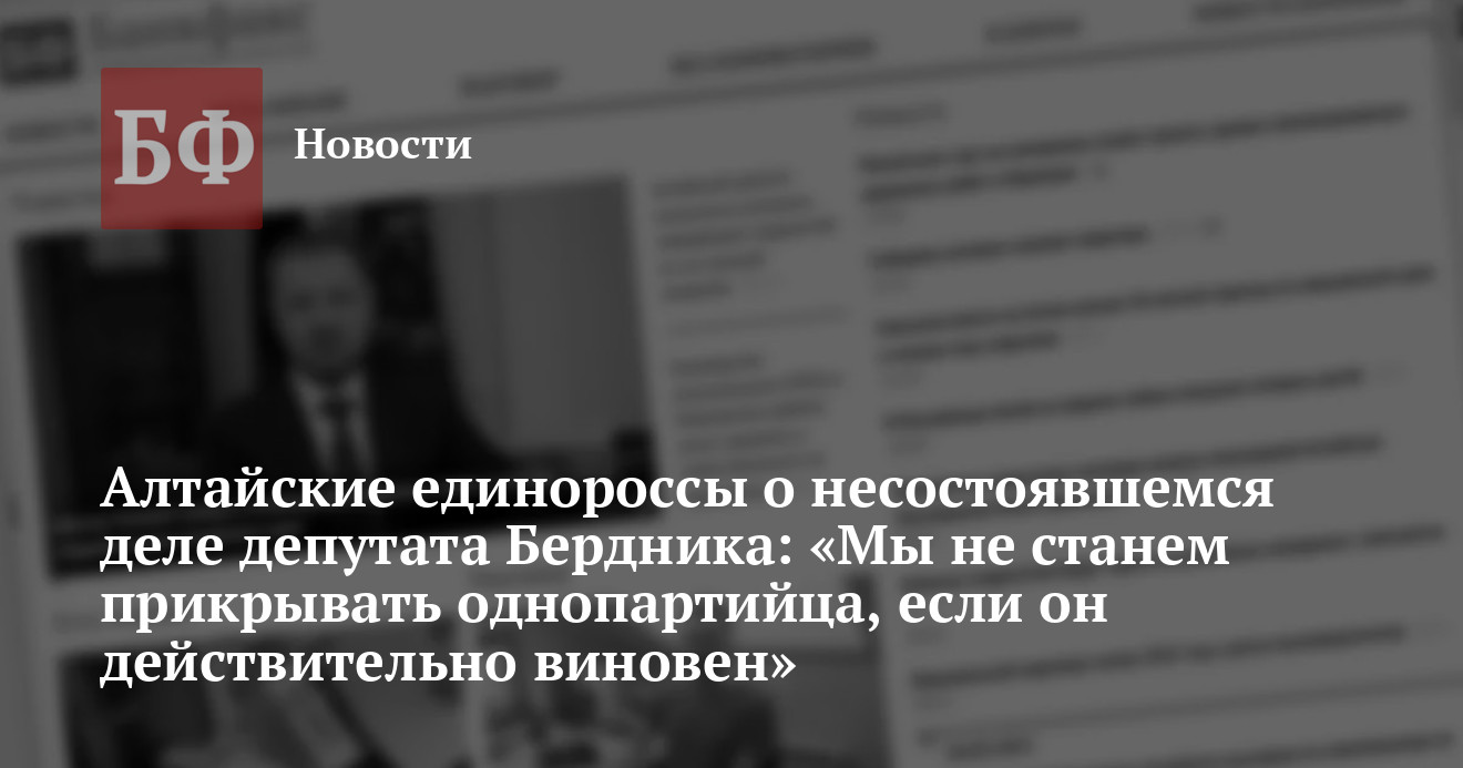Пресс-служба Алтайского регионального отделения партии «Единая Россия» прокомментировала недавнее заявление депутата Госдумы РФ Алины Аршиновой о возможных партийных «санкциях» в отношении депутата Алтайского Заксобрания, члена регионального политсовета «ЕР» Михаила Бердника.