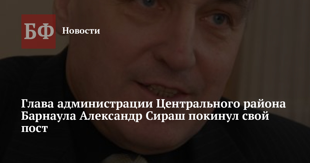 Александр Сираш, руководивший администрацией Центрального района Барнаула в течение последних восьми лет, уволился по собственному желанию. 1 июля он работает последний день, сообщили ИА «Банкфакс» в городском комитете по кадрам и муниципальной службе.