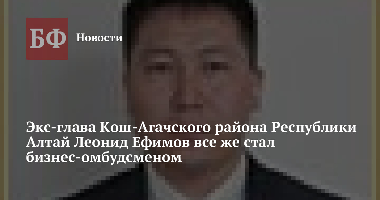 Между тем, процесс назначения республиканского бизнес-омбудсмена нельзя назвать гладким. Первоначально г-на Ефимова назначили на эту должность еще 29 декабря 2012 года, когда регламентирующий деятельность уполномоченного региональный закон еще не был принят. Таким образом власти республики «рассчитались» со скандальным политиком за «добровольную» отставку с поста главы Кош-Агачского района. Однако вскоре выяснилось, что его кандидатура не согласована с федеральным бизнес-омбудсменом Борисом Титовым (председателем Совета основателей «Деловой России» — прим. ред. «БФ»), который уже оказал протекцию руководителю местной организации «ДР» Вячеславу Кыдатову. Узнав о назначении Ефимова, Борис Титов потребовал отменить указ, однако после диалога с главой РА, проходившего за закрытыми дверями, все же одобрил кандидатуру Леонида Ефимова.