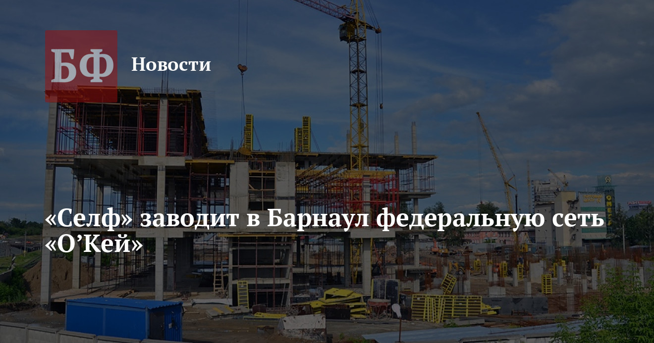 Якорным арендатором торгового комплекса, строительство которого идет на пересечении проспекта Ленина и улицы Пионеров в Барнауле, будет федеральный продуктовый ритейлер «О'Кей». Об этом ИА «Банкфакс» рассказал представитель генподрядчика строительства — компании «Селф».