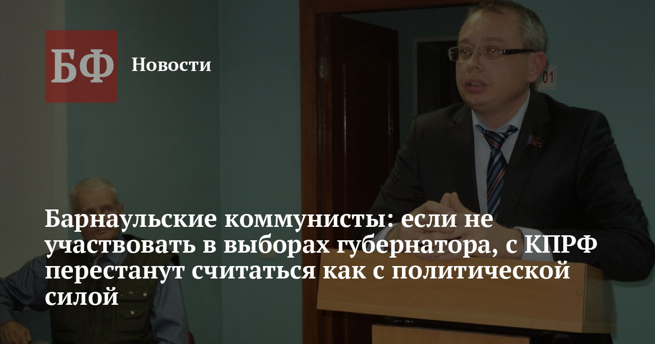 «Оба депутата уверены, что неучастие партии в этом процессе приведет к тому, что с КПРФ как политической силой перестанут считаться. Несмотря на высказанное участниками политклуба опасение, связанное с существующим муниципальным фильтром, который может стать непреодолимым препятствием для кандидатов от оппозиции, барнаульские коммунисты пришли к общему выводу, что если компартия не сможет преодолеть установленный властью выборный барьер — это останется на совести власти, но КПРФ в Алтайском крае не должна отказываться, что называется, от политического боя и обозначит свою кандидатуру на должность главы региона», — сообщает пресс-служба Барнаульского горкома КПРФ.