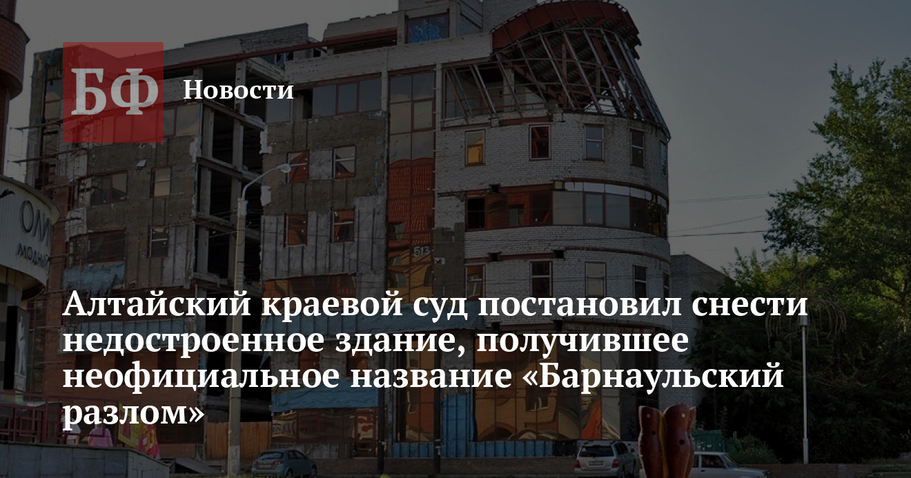 title="Алтайский краевой суд постановил снести недостроенное здание, получившее неофициальное название «Барнаульский разлом»"