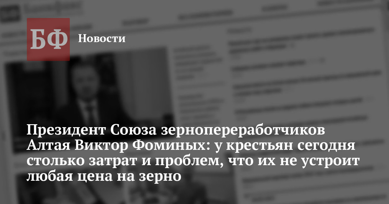 Виктор Фоминых, президент Союза зернопереработчиков Алтая: