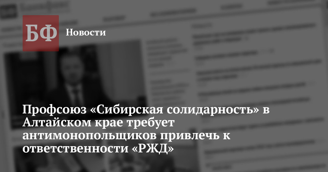 В связи с изложенными фактами расследования профсоюз просит Алтайское краевое УФАС привлечь к ответственности монополиста, принудить соблюдать законодательство РФ и повлиять на восстановление железнодорожной ветки в полном объеме.