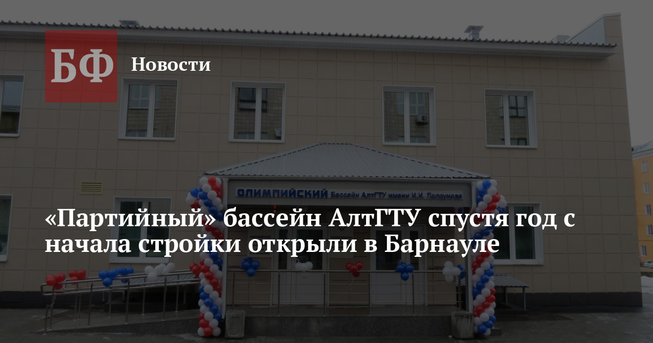 Напомним, строительство спортивного объекта в рамках проекта «500 бассейнов» «Единой России» велось с июля 2012 по сентябрь 2013 года при организационной и финансовой поддержке краевой администрации. Сроки сдачи бассейна в эксплуатацию неоднократно сдвигались. По словам руководства вуза, частично работы затормозили прошлогодние сильные морозы. Подвел и генподрядчик — строительное управление № 28, которое неоднократно привлекалось к административной ответственности за нарушения требований к организации стройплощадки, технике безопасности, а также к качеству выполняемых работ. Как отметил секретарь алтайского регионального отделения партии «Единая Россия» Борис Трофимов, «да, у нас был непорядочный подрядчик, <…> но мы не могли подвести край и с задачей справились».