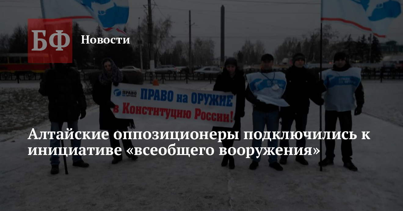 Пикет с требованием внести поправки в Конституцию России, допускающие самооборону с помощью оружия, провели 12 декабря в Барнауле активисты недавно образованного Алтайского отделения межрегионального движения «Право на оружие».