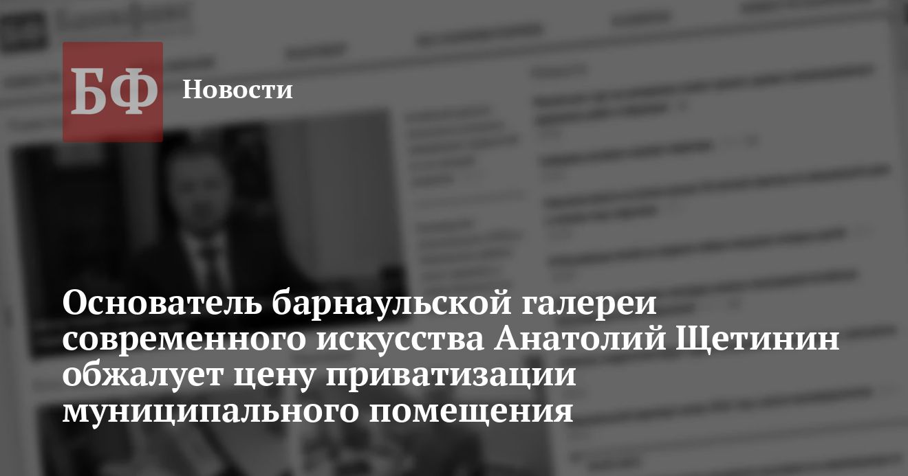 Барнаульский художник, коллекционер и бизнесмен Анатолий Щетинин пытается через суд добиться изменений условий приватизации помещения арт-галереи, расположенного по проспекту Социалистическому, 78.