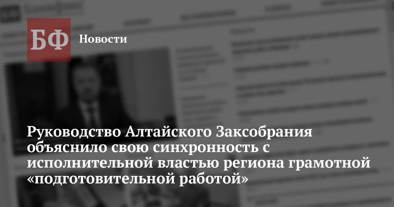 Тот факт, что алтайский парламент утверждает вносимые администрацией региона законопроекты практически без обсуждения, обусловлен не его подконтрольностью, а предварительной работой, которая сегодня «играет большую роль» в законотворческой деятельности. Такой вывод можно сделать из заявления спикера АКЗС Ивана Лоора, сделанного им в ходе интернет-конференции на официальном сайте Заксобрания 19 декабря.