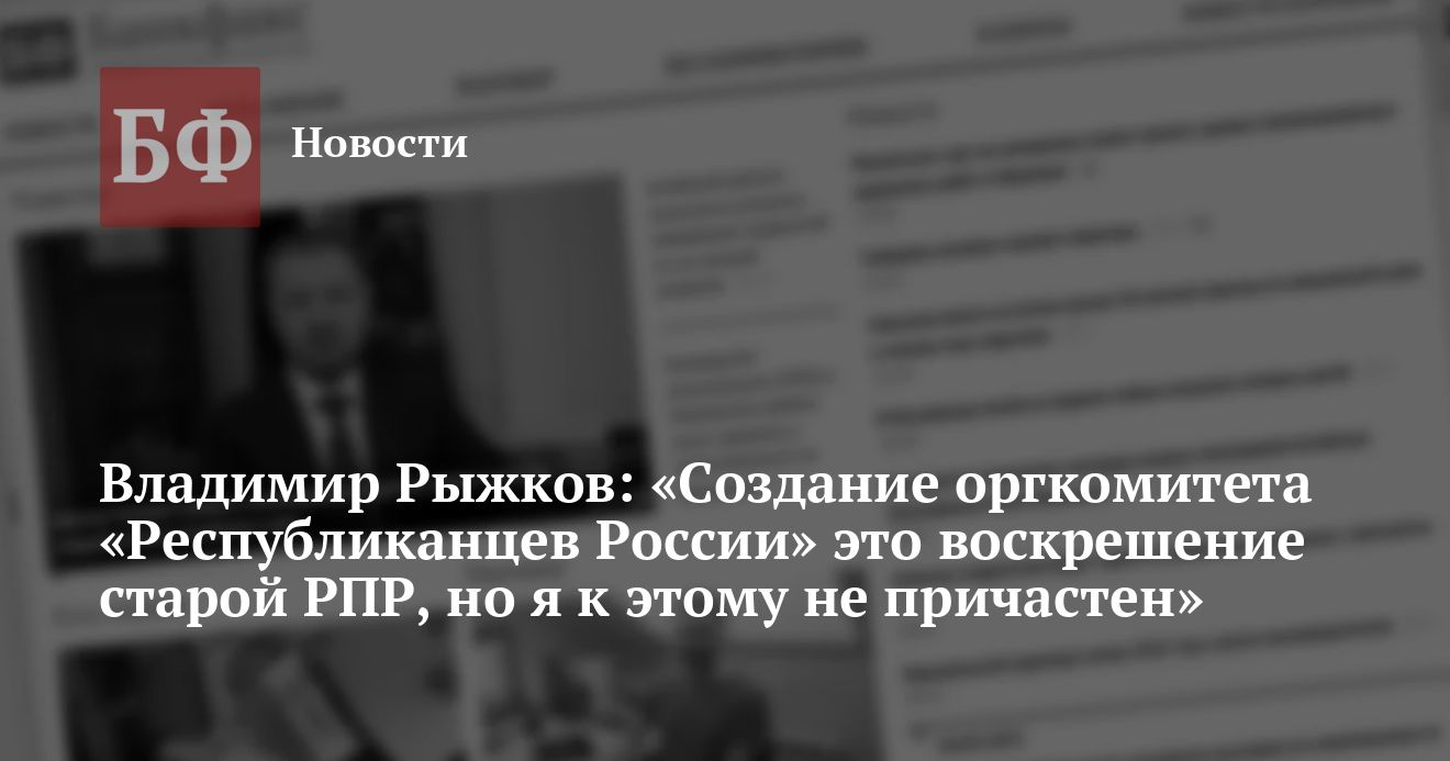 Как пояснил «Ведомостям» сам Владимир Рыжков, создание оргкомитета — это восстановление прежней РПР, однако он сам к этому не имеет никакого отношения. О региональной инициативе ему сообщили постфактум. «Проблемы в партии назрели, люди видят такой способ их решения, но пока это только подстраховка на случай, если партию не удастся сохранить», — считает политик.