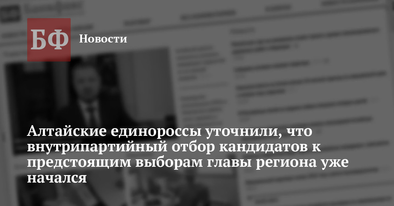В сообщении «ЕР» также указывается, что перечень кандидатур партийцы утвердят в конце апреля. Так называемые встречи-голосования намечены на май. Победитель предварительного внутрипартийного голосования будет выдвинут как кандидат на пост высшего должностного лица региона на конференции алтайских единороссов, которая состоится в июне.