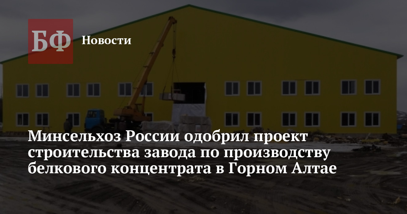 Проект строительства в Республике Алтай завода по производству белкового концентрата в рамках программы «Протеин России. Высокотехнологичное производство белкового концентрата из масличных культур» получил поддержку Минсельхоза РФ, сообщает офсайт правительства региона.