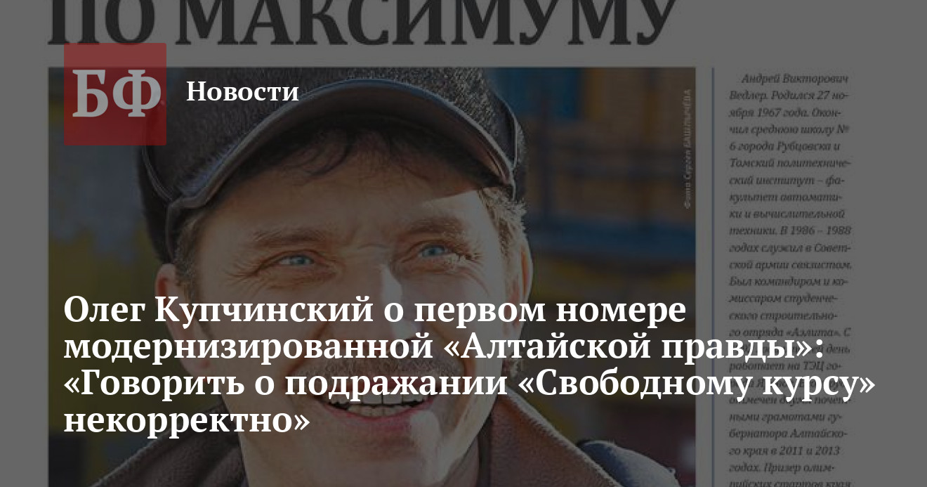 Олег Купчинский, шеф-редактор газеты «Алтайская правда»: