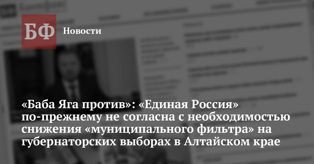 Фракция «Единая Россия» в Алтайском краевом Заксобрании по-прежнему не поддерживает идею снижения «муниципального фильтра» на выборах губернатора региона. Такой вывод сделали алтайские справедливороссы, изучив ответ руководителя фракции «ЕР» Бориса Трофимова на совместное обращение трех фракций АКЗС — «Справедливой России», КПРФ и ЛДПР.