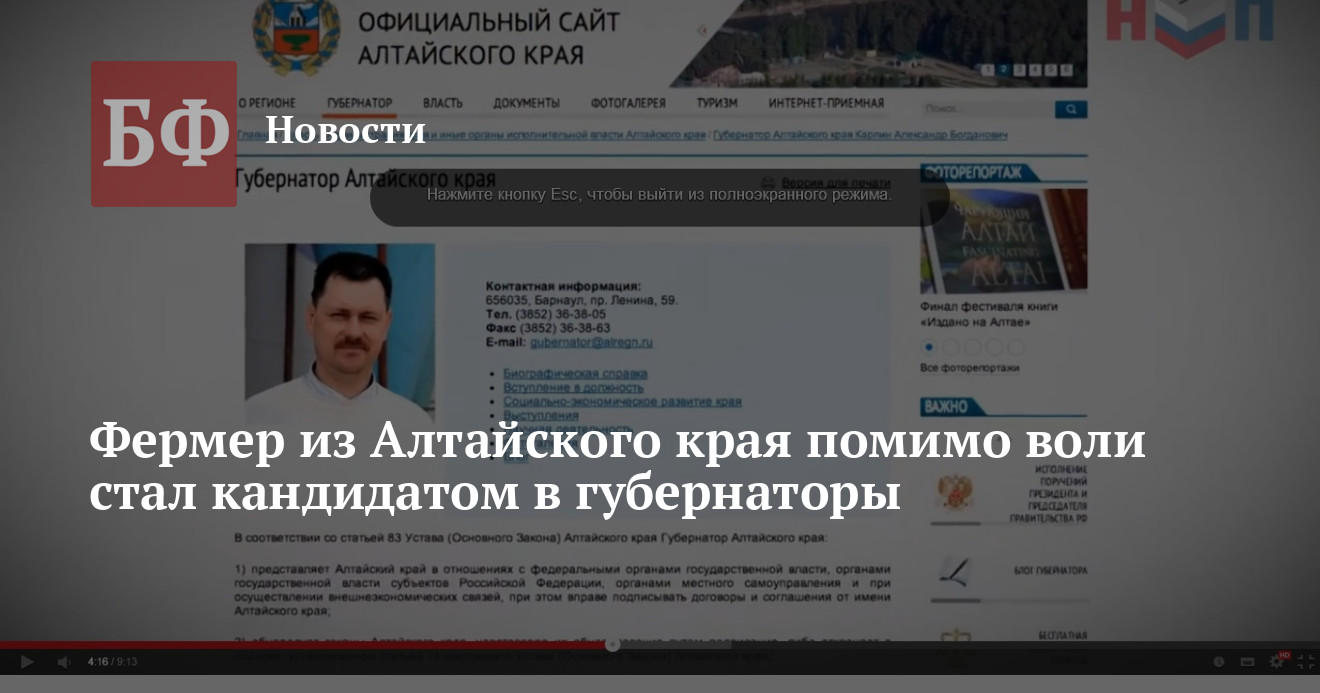5 мая на видеохостинге Youtube был опубликован ролик с участием председателя ассоциации фермеров Михайловского района Александра Капелькина, который якобы претендует на пост губернатора Алтайского края и намерен участвовать в праймериз пропутинского «Общероссийского народного фронта».