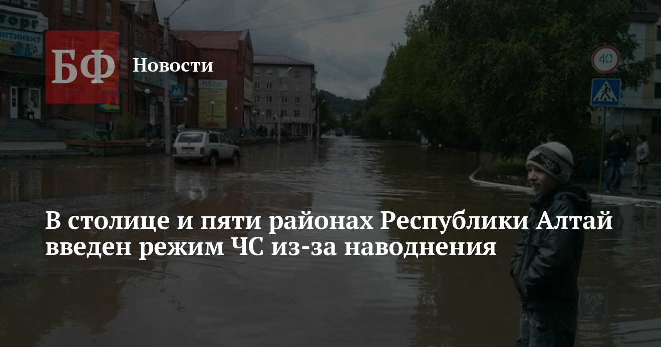 29 мая в связи с ухудшением погодных условий на территории Республики Алтай и неблагоприятным прогнозом на ближайшее время чрезвычайная ситуация была объявлена в Чойском, Чемальском, Усть-Канском, Улаганском и Майминском районах и Горно-Алтайске, сообщает портал правительства региона.