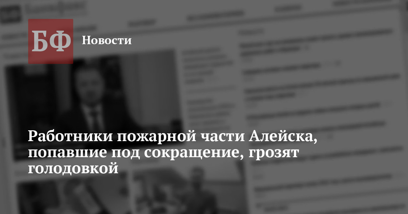 Работники пожарной части № 50 Алейска грозят объявить бессрочную голодовку, если руководство не пересмотрит свое решение об их сокращении. Провести акцию протеста они намерены 16 июня. Информация об этом размещена 3 июня на сайте правозащитной организации «Институт «Коллективное действие» (ИКД).
