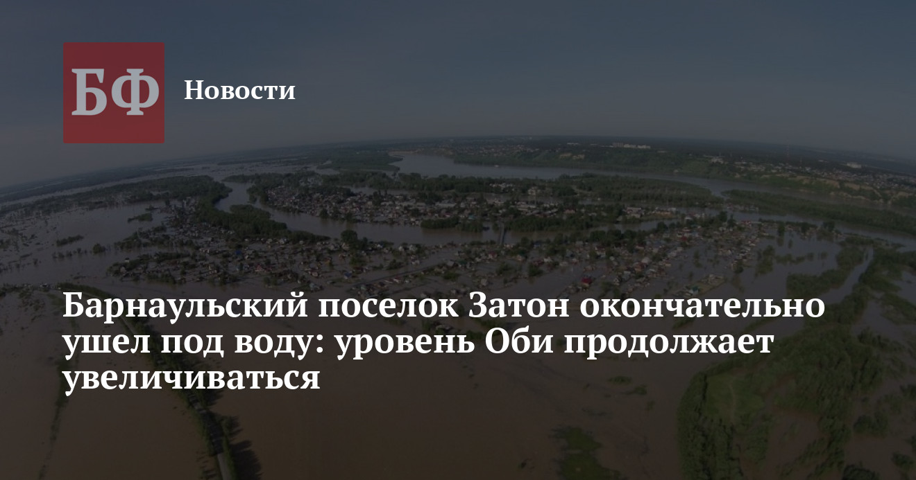 Утром 6 июня уровень воды в районе поселка Затон поднялся выше 6 м, в то время как критический показатель составляет 5,4 м. Автомобильное сообщение с населенным пунктом полностью прервано, сказано на сайте администрации Барнаула.