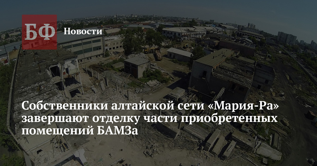 Владельцы сети «Мария-Ра» заканчивают ремонт административных зданий и расчищает площадку для нового объекта на бывшей территории Барнаульского аппаратурно-механического завода. Как заверил ИА «Банкфакс» совладелец компании Евгений Ракшин, разбор старых зданий закончится до конца 2014 года.