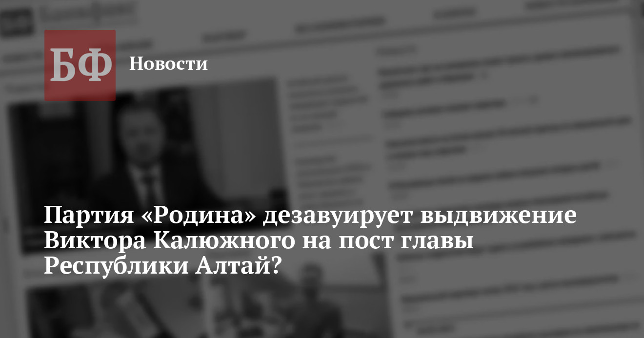 Вице-премьер правительства РФ, основатель партии «Родина» Дмитрий Рогозин опроверг информацию о том, что кандидатура Виктора Калюжного, выдвинутая республиканским отделением «Родины» на пост главы Республики Алтай, согласована с лидерами партии. Об этом сообщает сайт «РАдар» со ссылкой на источники в центральном аппарате «Родины».
