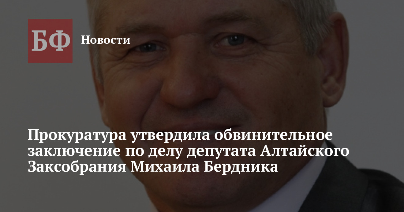 Прокуратура Алтайского края утвердила обвинительное заключение по уголовному делу в отношении бывшего директора Павловского сельхозколледжа, депутата АКЗС фракции «Единой России» Михаила Бердника. Дело будет направлено для рассмотрения в Павловский районный суд после вручения обвиняемому копии заключения, сказано на сайте ведомства.