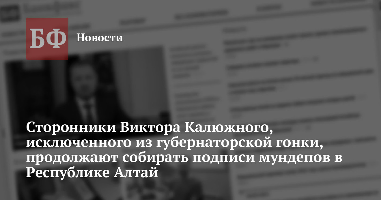 Представители выдвигавшегося на пост главы Республики Алтай экс-министра энергетики России Виктора Калюжного, снятого с выборов по решению избиркома, продолжают сбор подписей муниципальных депутатов. Как рассказал ИА «Банкфакс» политтехнолог Константин Лукин, это может свидетельствовать об их готовности обжаловать в суде решение комиссии.