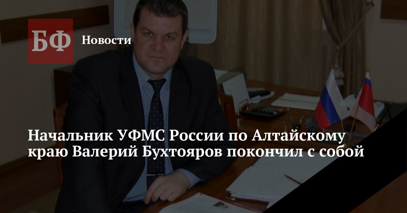21 июля поздно вечером в барнаульской квартире было обнаружен труп начальника Управления Федеральной миграционной службы по Алтайскому краю Валерия Бухтоярова, сообщает офсайт СУ СКР по Алтайскому краю. Основная версия случившегося — самоубийство.