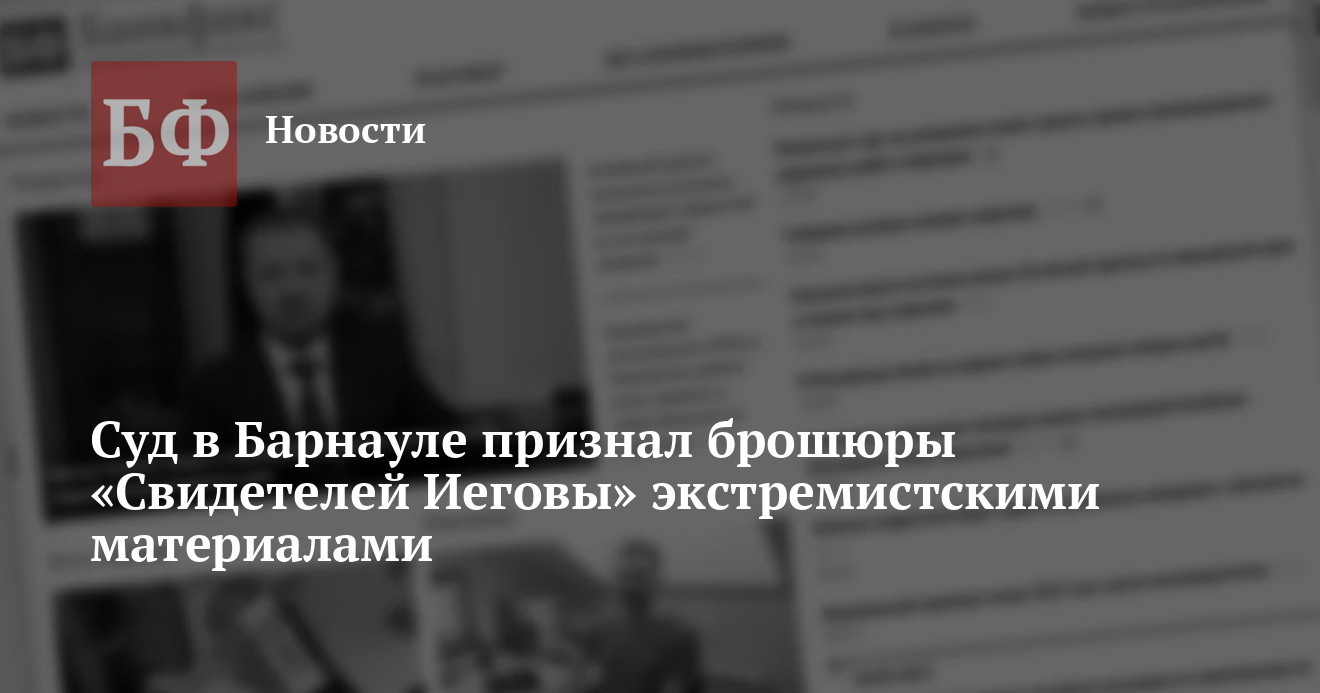 Центральный районный суд Барнаула удовлетворил требования городской прокуратуры о признании ряда агитационных материалов «Свидетелей Иеговы» экстремистскими. Об этом сообщает офсайт краевого надзорного ведомства.