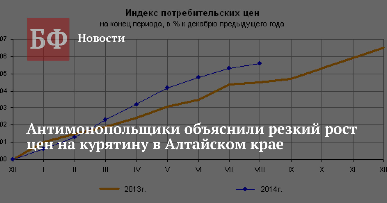 По данным антимонопольщиков, курятина дорожала весь 2014 год, однако в августе оптовые цены подскочили более чем на 5%. На рознице это отразилось не столь значительно, однако большое количество обращений говорит об обеспокоенности населения. В ходе проверки выяснилось, что скачок связан с увеличением отпускной стоимости на оптовых базах Москвы и Санкт-Петербурга. Информация об этих фактах направлена в территориальные управления ФАС для принятия мер в случае нарушений антимонопольного законодательства.