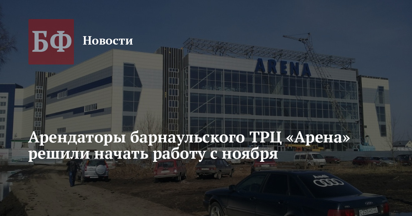 Проектом занимается «Концерн «СВ», известный такими объектами как «Европа», «Норд-Вест», «Москва» и т.д. В числе якорных арендаторов «Арены» значатся гипермаркет строительных материалов Leroy Merlin, продуктовый гипермаркет «Магнит», мегамаркета бытовой техники Media Markt. Здесь откроется первый в Барнауле магазин NewYorker и McDonald’s. Помимо этого, в ТРЦ будут представлены отделы марок L’Etoile, Buttоn Blue, Bershka, Zarina. Стоит добавить, что сроки открытия неоднократно переносились, ранее заявляли о сдаче объекта к марту 2013 года.