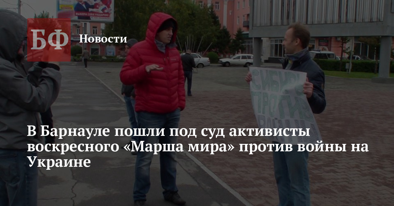 «Марш мира» в Барнауле, проходивший в форме одиночного пикета на Нулевом километре 21 сентября, закончился задержанием активистов. Причиной для этого послужило заявление председателя Межрегионального межотраслевого профсоюза «Сибирская cолидарность» Андрея Маевича, которое тот направил в полицию. Организаторы якобы угрожали ему физической расправой и провоцировали на конфликт, рассказал ИА «Банкфакс» профсоюзный лидер.