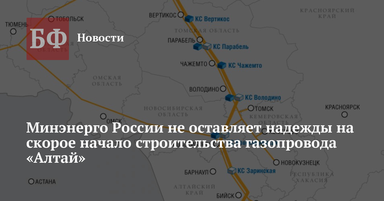 В октябре 2008 года многочисленные российские СМИ, цитируя официальное сообщение, якобы распространенное Министерством энергетики РФ, объявили, что в силу неконкурентоспособности и экономической нецелесообразности проект газопровода «Алтай» выведен за генеральную схему развития газовой отрасли РФ до 2030 года. В связи с этим Минэнерго было вынуждено заявить, что подобных официальных сообщений оно не распространяло и что «Генеральная схема развития газовой отрасли на период до 2030 года» находится пока на стадии проектирования и рассмотрения.