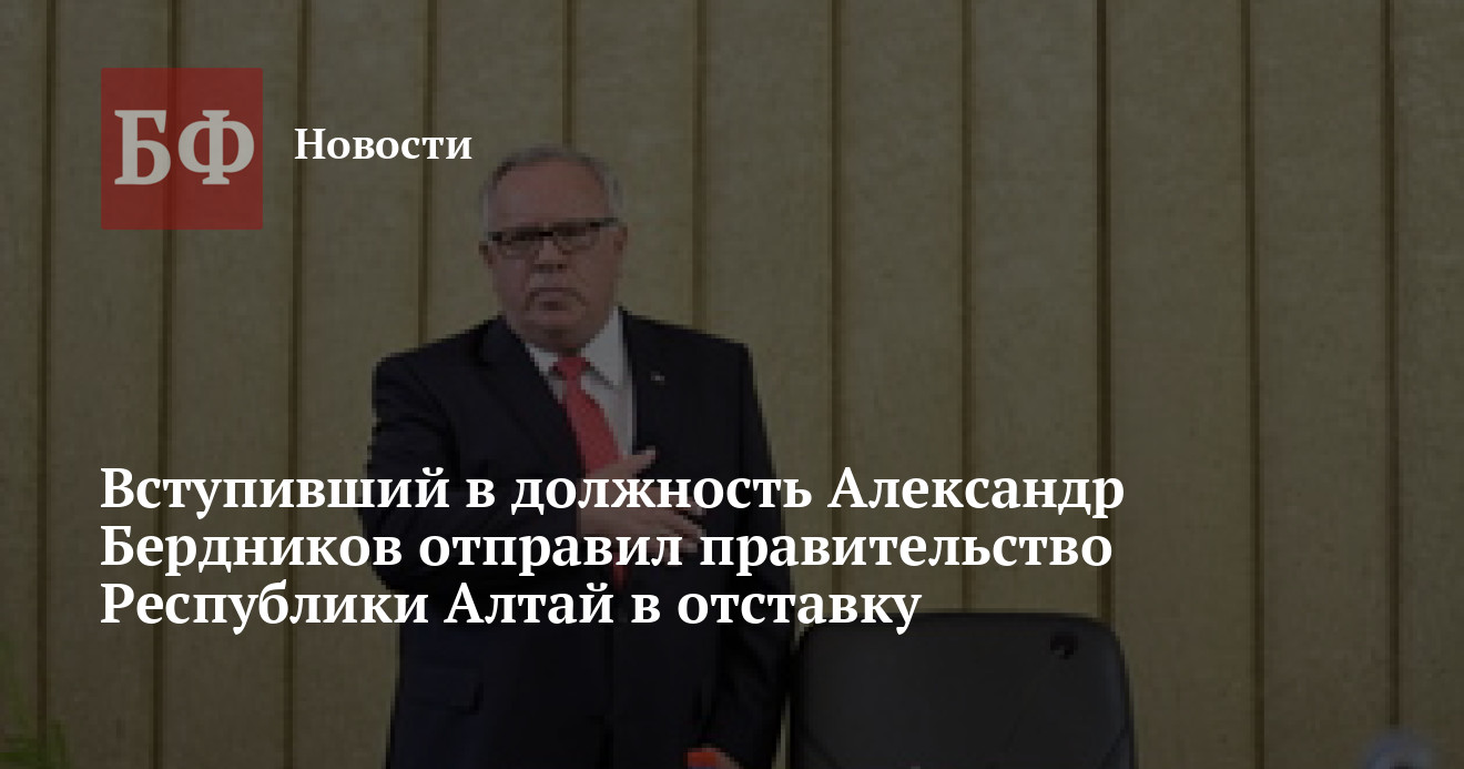 30 сентября, в день своей инаугурации на посту главы Республики Алтай, Александр Бердников подписал указ об отставке кабинета министров региона в полном составе. Текст документа размещен на официальном сайте правительства.