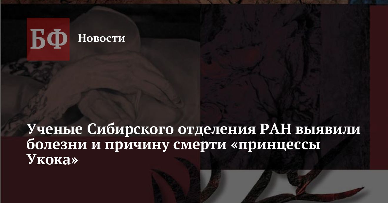 «Принцесса Укока» умерла от рака груди, а при жизни страдала серьезными заболеваниями. Кроме того, прямо перед смертью она получила несколько тяжелых травм в результате падения с лошади. Об этом свидетельствуют данные томографического исследования, опубликованные в журнале «Наука из первых рук» от имени нескольких ученых СО РАН.