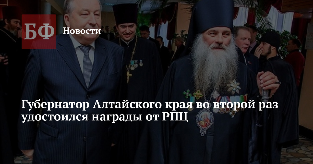 Награду вручил епископ Барнаульский и Алтайский Сергий на праздновании, посвященном 20-летию образования административной единицы РПЦ. В мероприятии, проходившем в краевом Театре музкомедии, приняли участие не только духовные особы. Губернатор отметил, что с приездом в Алтайский край владыки Сергия заметно активизировалась церковно-приходская жизнь. «Мы наблюдаем новый виток развития в крае православного образования и просвещения. Сегодня Барнаульская и Алтайская епархия располагает четырьмя духовными школами, но именно при владыке Сергии Барнаульская православная семинария достойно вошла в образовательное пространство края, получив государственную лицензию, а владыка Сергий был с почетом принят в Совет ректоров Алтайского края и Республики Алтай», — отметил глава региона.