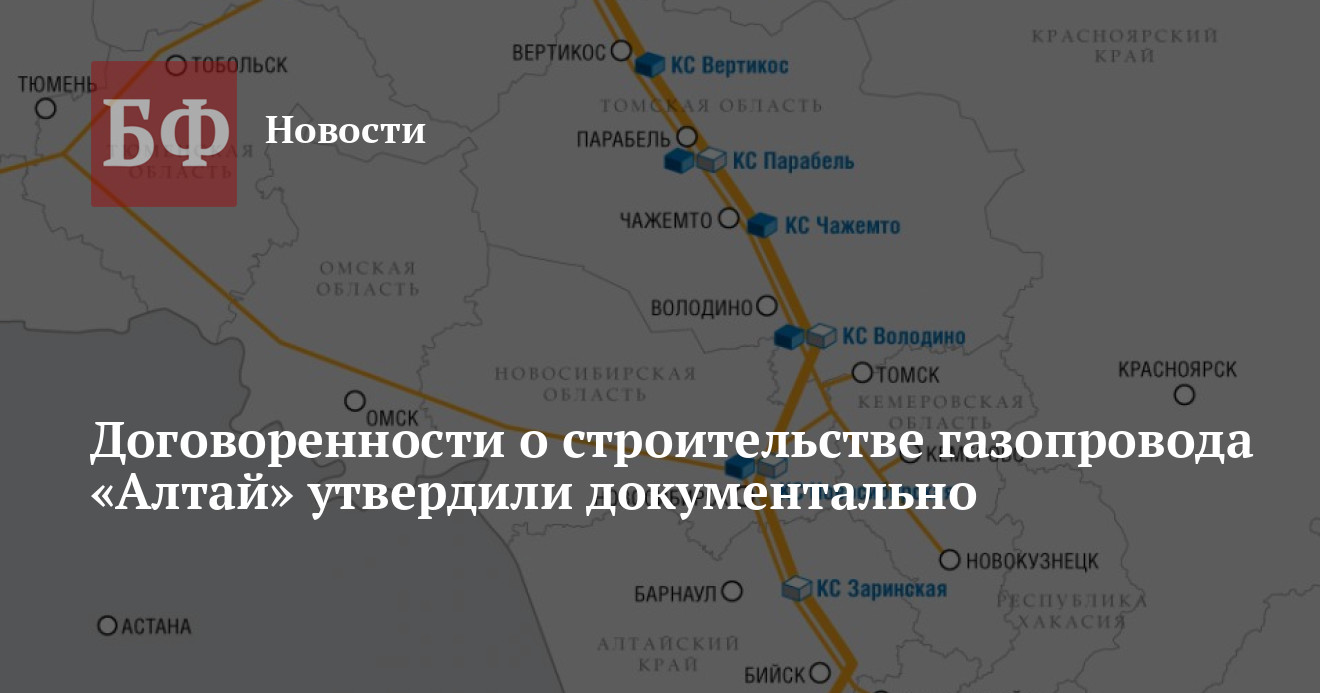 Общая протяженность газопровода «Алтай», по которому газ из Западной Сибири пойдет в Китай, составит около 2,7 тысяч км. Первый газ по нему, как ожидается, пойдет в 2019 году.