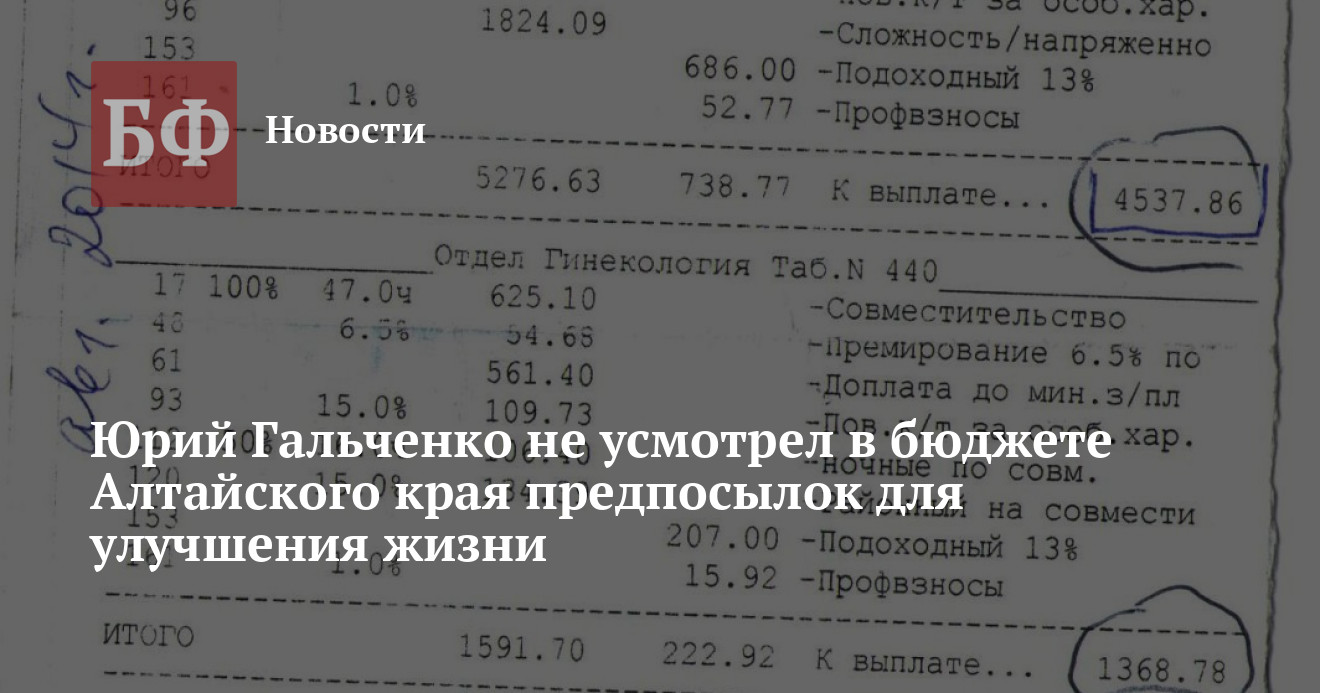 По его словам, в Алтайском крае не существует никакого плана по преодолению бедности, в то время как доходы многих слоев населения остаются на крайне низком уровне. «Недавно общался с одной санитаркой. Она показала мне свою квитанцию о зарплате. Так вместе с совместительством в месяц выходит всего 5900 рублей! При этом жаловаться на такое положение вещей она и другие люди, находящиеся в похожей ситуации, — нянечки и младшие воспитатели в детсадах — просто боятся. Даже когда я на сессиях АКЗС озвучиваю реальное положение дел в Алтайском крае, меня сразу жестким тоном просят назвать фамилии этих людей, которых не устраивает их зарплата. Если личности удается установить, то в их отношении немедленно применяются санкции вплоть до увольнения», — рассказал Юрий Гальченко.