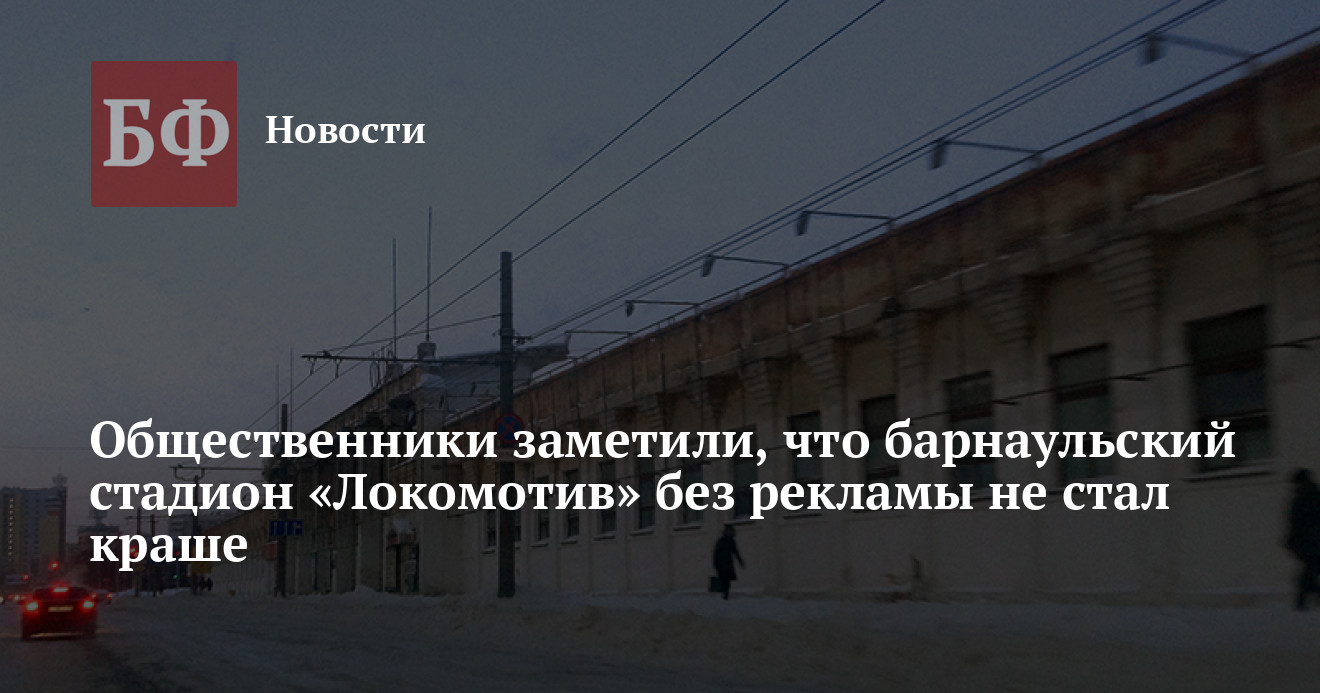 По его словам, если рекламу начнут возвращать на прежнее место, этим должна плотно заняться прокуратура. Однако пока фасад чист и ничто не предвещает новых нарушений. С заместителем главы администрации Барнаула по градостроительству и земельным отношениям Светланой Чаузовой оперативно связаться и получить комментарии о судьбе стадиона не удалось.